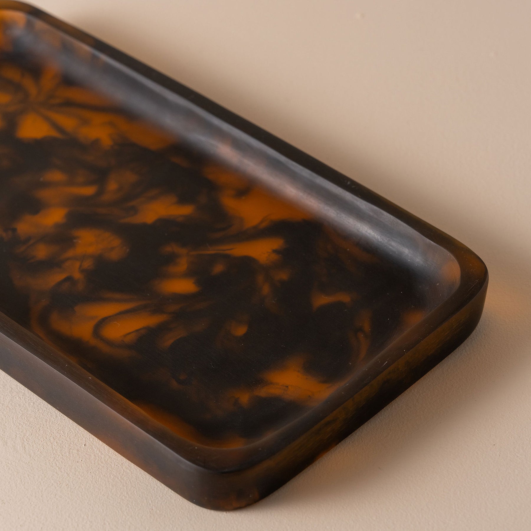 This resin tray is multifunctional; as a catch-all for loose change and keys, a tray for perfumes and cologne, or a bathroom toiletry tray. It has a clean and organic shape and soft curves with a soft marble finish.